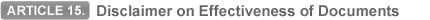 | Banks assume no liability or responsibility for the form, sufficiency, accuracy, genuineness, falsification or legal effect of any document(s), or for the general and/or particular conditions stipulated in the document(s) or superimposed thereon; nor do they assume any liability or responsibility for the description, quantity, weight, quality, condition, packing, delivery, value or existence of the goods represented by any document(s), or for the good faith or acts and/or omissions, solvency, performance or standing of the consignors, the carriers, the forwarders, the consignees or the insurers of the goods, or any other person whomsoever. |