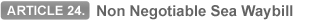 | A. If a Credit calls for a non negotiable sea waybill covering a port to port shipment, banks will, unless otherwise stipulated in the Credit, accept a document, however named, which: i. appears on its face to indicate the name of the carrier and to have been signed or otherwise authenticated by: o the carrier or a named agent for or on behalf of the carrier, or o the master or a named agent for or on behalf of the master, Any signature or authentication of the carrier or master must be identified as carrier or master, as the case may be. An agent signing or authenticating for the carrier or master must also indicate the name and the capacity of the party, i.e. carrier or master, on whose behalf that agent is acting, and ii. indicates that the goods have been loaded on board, or shipped on a named vessel. Loading on board or shipment on a named vessel may be indicated by pre printed wording on the nonnegotiable sea waybill that the goods have been loaded on board a named vessel or shipped on a named vessel, in which case the date of issuance of the non negotiable sea waybill will be deemed to be the date of loading on board and the date of shipment. In all other cases loading on board a named vessel must be evidenced by a notation on the non negotiable sea waybill which gives the date on which the goods have been loaded on board, in which case the date of the on board notation will be deemed to be the date of shipment. If the non negotiable sea waybill contains the indication "intended vessel", or similar qualification in relation to the vessel, loading on board a named vessel must be evidenced by an on board notation on the non negotiable sea waybill which, in addition to the date on which the goods have been loaded on board, includes the name of the vessel on which the goods have been loaded, even if they have been loaded on the vessel named as the "intended vessel". If the non negotiable sea waybill indicates a place of receipt or taking in charge different from the port of loading, the on board notation must also include the port of loading stipulated in the Credit and the name of the vessel on which the goods have been loaded, even if they have been loaded on a vessel named in the nonnegotiable sea waybill. This provision also applies whenever loading on board the vessel is indicated by pre printed wording on the non negotiable sea waybill, and iii. indicates the port of loading and the port of discharge stipulated in the Credit, notwithstanding that it: a. indicates a place of taking in charge different from the port of loading, and/or a place of final destination different from the port of discharge, and/or b. contains the indication "intended" or similar qualification in relation to the port of loading and/or port of discharge, as long as the document also states the ports of loading and/or discharge stipulated in the Credit, and iv. consists of a sole original non negotiable sea waybill, or if issued in more than one original, the full set as so issued, and v. appears to contain all of the terms and conditions of carriage, or some of such terms and conditions by reference to a source or document other than the nonnegotiable sea waybill (short form/blank back nonnegotiable sea waybill); banks will not examine the contents of such terms and conditions, and vi. contains no indication that it is subject to a charter party and/or no indication that the carrying vessel is propelled by sail only, and vii. in all other respects meets the stipulations of the Credit. B. For the purpose of this Article, transshipment means unloading and reloading from one vessel to another vessel during the course of ocean carriage from the port of loading to the port of discharge stipulated in the Credit. C. Unless transshipment is prohibited by the terms of the Credit, banks will accept a non negotiable sea waybill which indicates that the goods will be transshipped, provided that the entire ocean carriage is covered by one and the same non negotiable sea waybill. D. Even if the Credit prohibits transshipment, banks will accept a non negotiable sea waybill which: i. indicates that transshipment will take place as long as the relevant cargo is shipped in Container(s), Trailer(s) and/or "LASH" barge(s) as evidenced by the nonnegotiable sea waybill, provided that the entire ocean carriage is covered by one and the same non negotiable sea waybill, and/or ii. incorporates clauses stating that the carrier reserves the right to transship. |