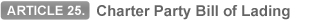 | A. If a Credit calls for or permits a charter party bill of lading, banks will, unless otherwise stipulated in the Credit, accept a document, however named, which: i. contains any indication that it is subject to a charter party, and ii. appears on its face to have been signed or otherwise authenticated by: o the master or a named agent for or on behalf of the master, or o the owner or a named agent for or on behalf of the owner. Any signature or authentication of the master or owner must be identified as master or owner as the case may be. An agent signing or authenticating for the master or owner must also indicate the name and the capacity of the party, i.e. master or owner, on whose behalf that agent is acting, and iii. does or does not indicate the name of the carrier, and iv. indicates that the goods have been loaded on board or shipped on a named vessel. Loading on board or shipment on a named vessel may be indicated by pre printed wording on the bill of lading that the goods have been loaded on board a named vessel or shipped on a named vessel, in which case the date of issuance of the bill of lading will be deemed to be the date of loading on board and the date of shipment. In all other cases loading on board a named vessel must be evidenced by a notation on the bill of lading which gives the date on which the goods have been loaded on board, in which case the date of the on board notation will be deemed to be the date of shipment, and v. indicates the port of loading and the port of discharge stipulated in the Credit, and vi. consists of a sole original bill of lading or, if issued in more than one original, the full set as so issued, and vii. contains no indication that the carrying vessel is propelled by sail only, and viii. in all other respects meets the stipulations of the Credit. B. Even if the Credit requires the presentation of a charter party contract in connection with a charter party bill of lading, banks will not examine such charter party contract, but will pass it on without responsibility on their part. |