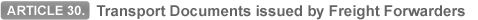 | Unless otherwise authorized in the Credit, banks will only accept a transport document issued by a freight forwarder if it appears on its face to indicate: i. the name of the freight forwarder as a carrier or multimodal transport operator and to have been signed or otherwise authenticated by the freight forwarder as carrier or multimodal transport operator, or ii. the name of the carrier or multimodal transport operator and to have been signed or otherwise authenticated by the freight forwarder as a named agent for or on behalf of the carrier or multimodal transport operator. |