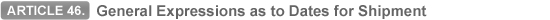 | A. Unless otherwise stipulated in the Credit, the expression "shipment" used in stipulating an earliest and/or a latest date for shipment will be understood to include expressions such as, "loading on board", "dispatch", "accepted for carriage", "date of post receipt", "date of pick up", and the like, and the case of a Credit calling for a multimodal transport document the expression "taking in charge". B. Expressions such as "prompt", "immediately", "as soon as possible", and the like should not be used. If they are used banks will disregard them. C. If the expression "on or about" or similar expressions are used, banks will interpret them as a stipulation that the shipment is to be made during the period from five days before to five days after the specified date, both end days included. |